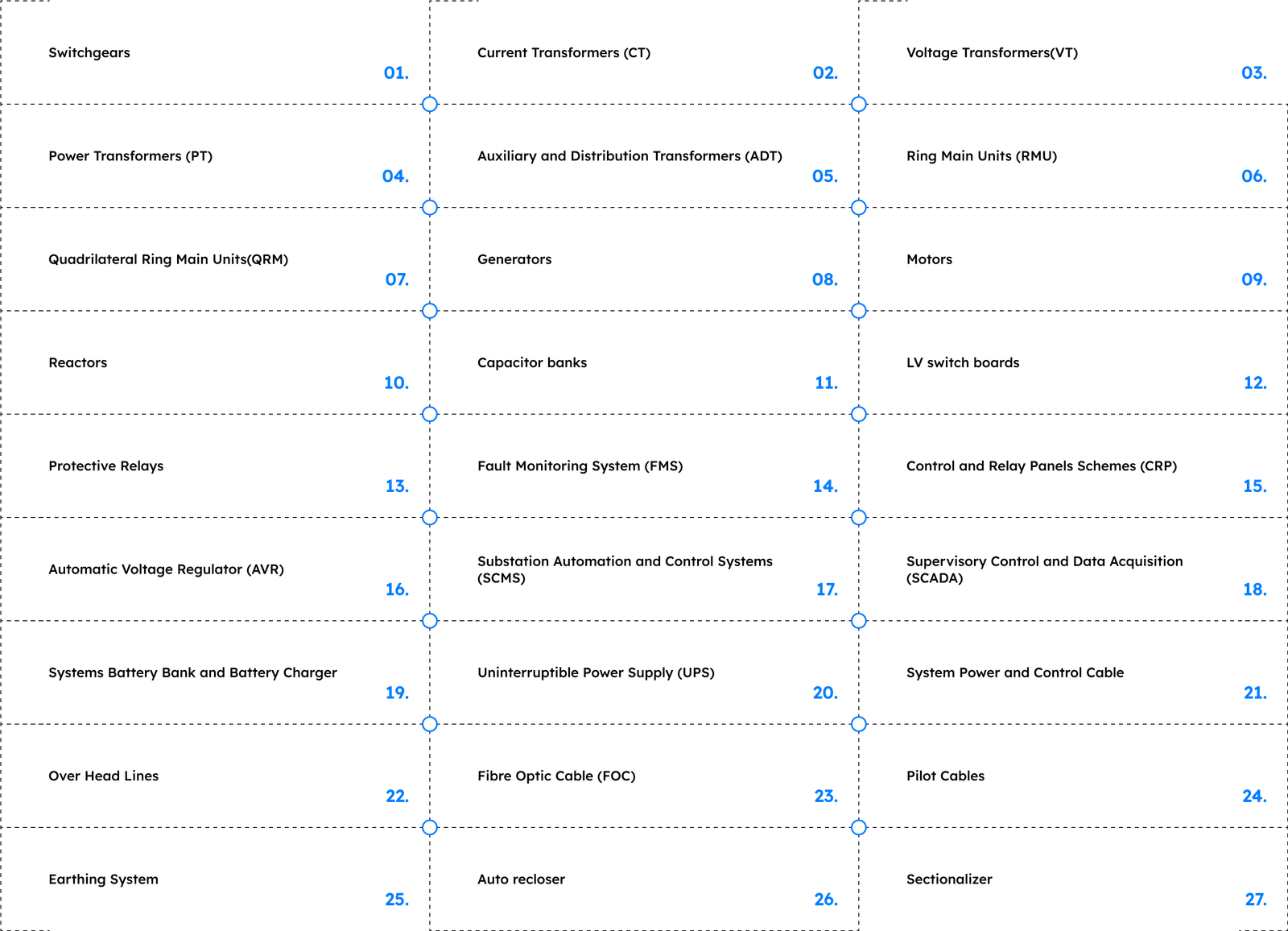 At PIE, we specialize in the supply of both primary and secondary electrical equipment, catering to diverse sectors such as Oil & Gas, Power, and Industrial. Our offerings include high-quality transformers, switchgear, circuit breakers, and protection relays. We source our equipment from leading manufacturers, ensuring reliability, efficiency, and compliance with international standards.